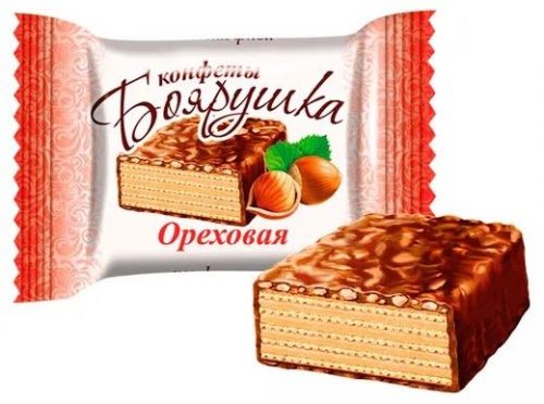 Это вафельная конфета с нежной шоколадно-кремовой начинкой, с цельным фундуком, посыпанная дроблёным арахисом и покрытая шоколадной глазурью.